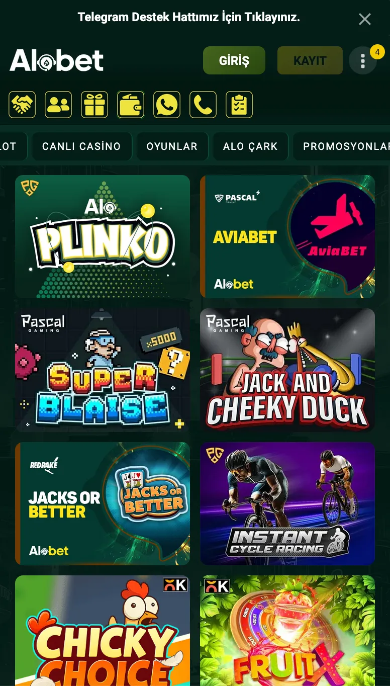 Alobet casino olarak, Türkiye’deki oyuncuların yoğun ilgi gösterdiği crash oyunlarını platformumuzda geniş bir seçenekle sunuyoruz. Bu hızlı tempolu oyunlar, anında kazanç fırsatı ve eğlenceli mekanikleriyle dikkat çekerken, kullanıcı dostu arayüzleriyle her seviyeden oyuncuya hitap eder.