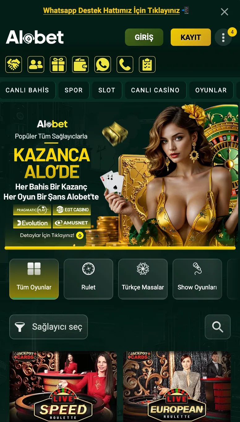 Alobet’te Evolution Gaming, Ezugi ve Pragmatic Play gibi sektörün önde gelen sağlayıcılarından canlı oyunlar bulabilirsiniz. Profesyonel krupiyeler, HD kalitesinde yayınlar ve Türkçe dil desteği ile eşsiz bir canlı casino deneyimi sağlıyoruz.